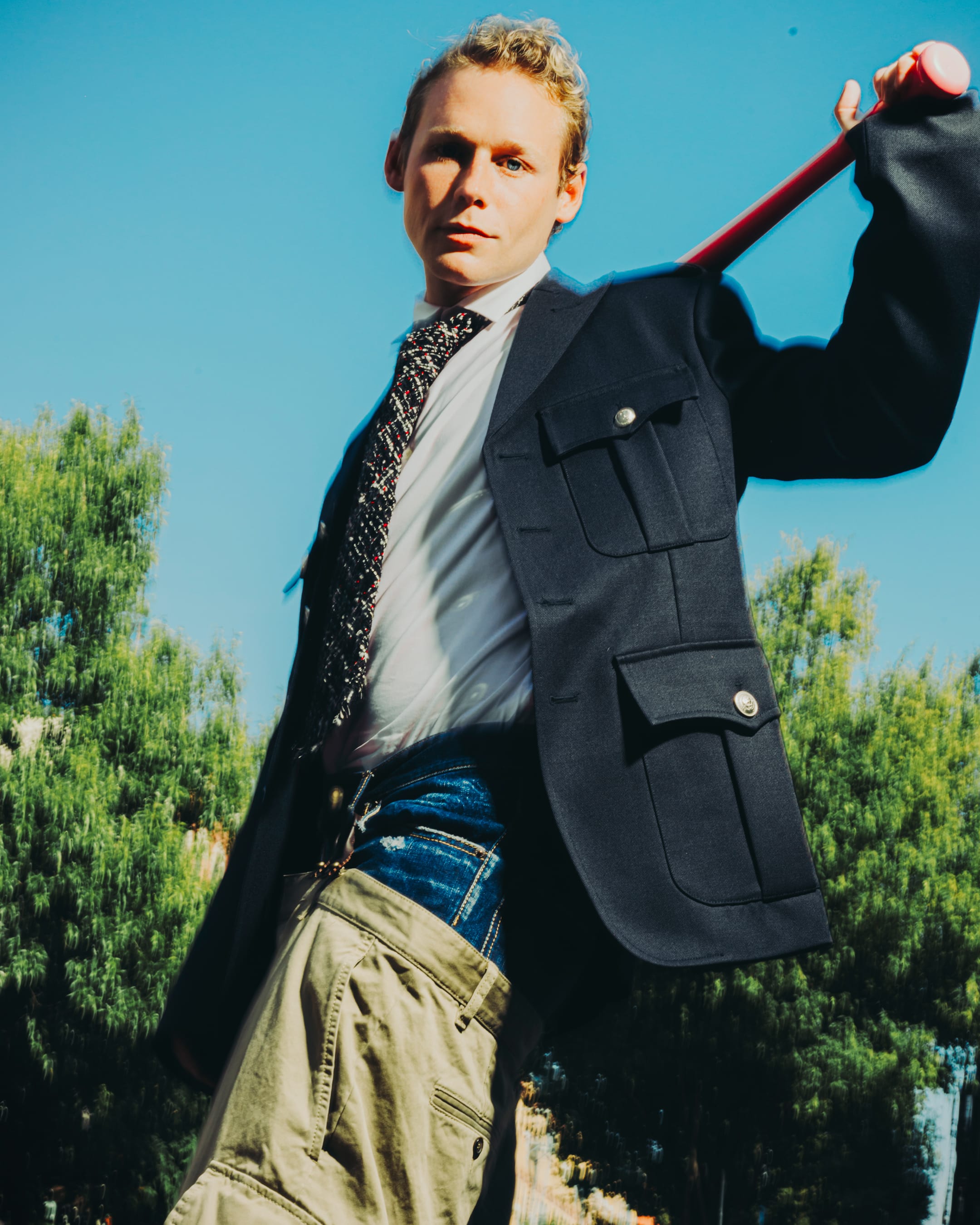 In and around the arthouse and experimental projects he’s made a home in, there’s been flirtations with the mainstream, too – a recurring role in The Gossip Girl reboot, for instance. But it’s in AppleTV+’s upcoming crime-thriller The Savant that he’ll decisively meet the masses. The show follows a team anchored by Oscar-winner Jessica Chastain’s Jodi, as they work to intercept online hate groups on the cusp of acts of extremism. Doman is one of her alt-right targets, Steve. From Chastain to another screen legend, he’s also weeks shy, when we chat, of the New York Film Festival screening of The Mastermind, Kelly Reichardt’s flip of an art heist movie, in which he appears alongside Josh O’Connor. “If you’d have asked me five American auteurs that I would want to work with, she would have been on that list,” he beams. Assuming they’re living, ticking off the other four might not be such a pipe dream if Doman’s career trajectory continues at the same velocity.