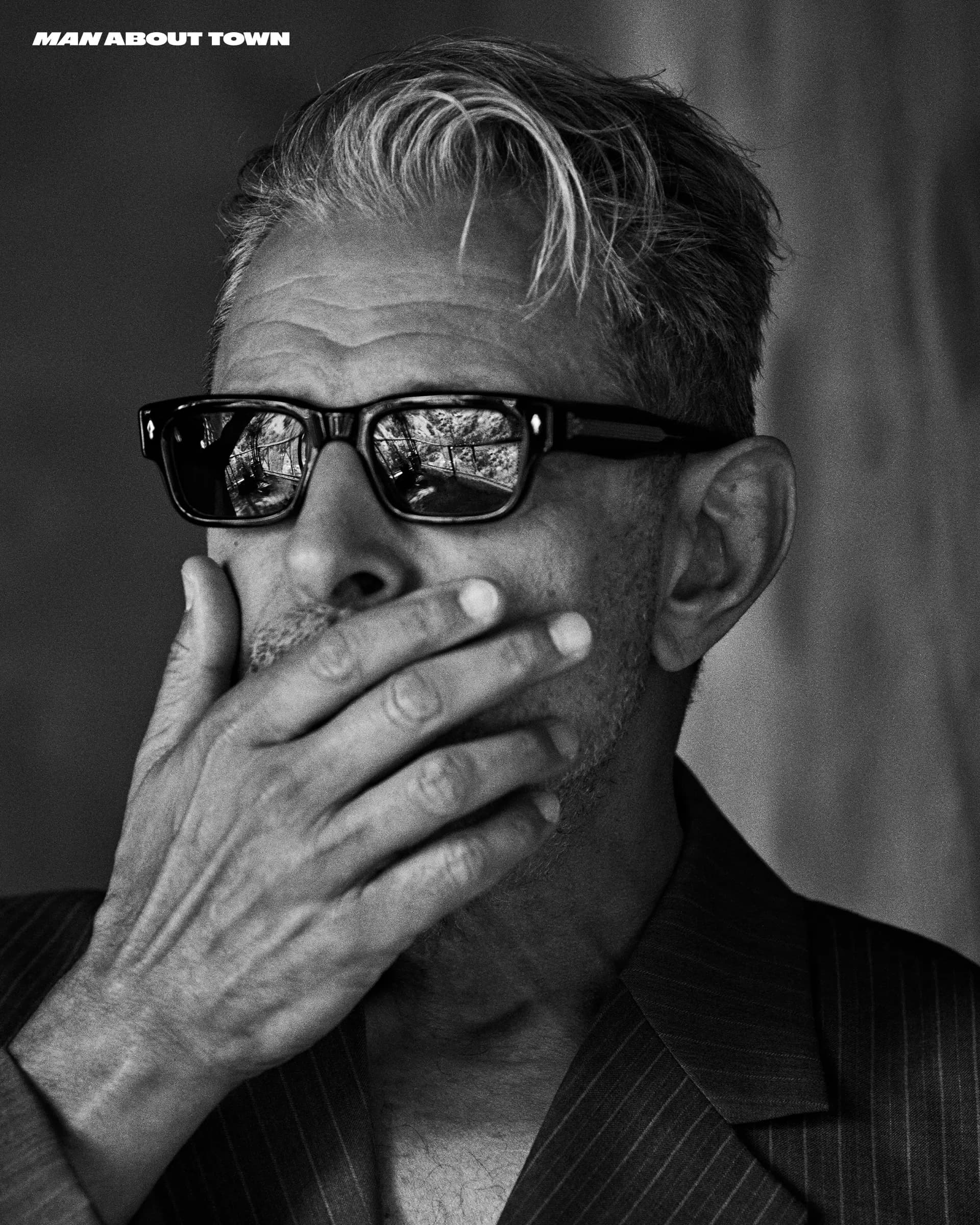 Goldblum rarely uses adjectives in singularity, preferring to plump up the subject of his description with four or five synonyms at a time, like some kind of walking, talking thesaurus, approaching conversation as something to really luxuriate in. “I’m looking forward to talking to you anyway,” he beams, before adding with a conscientious giggle, “But we should be aware that we’re doing this publicly.”