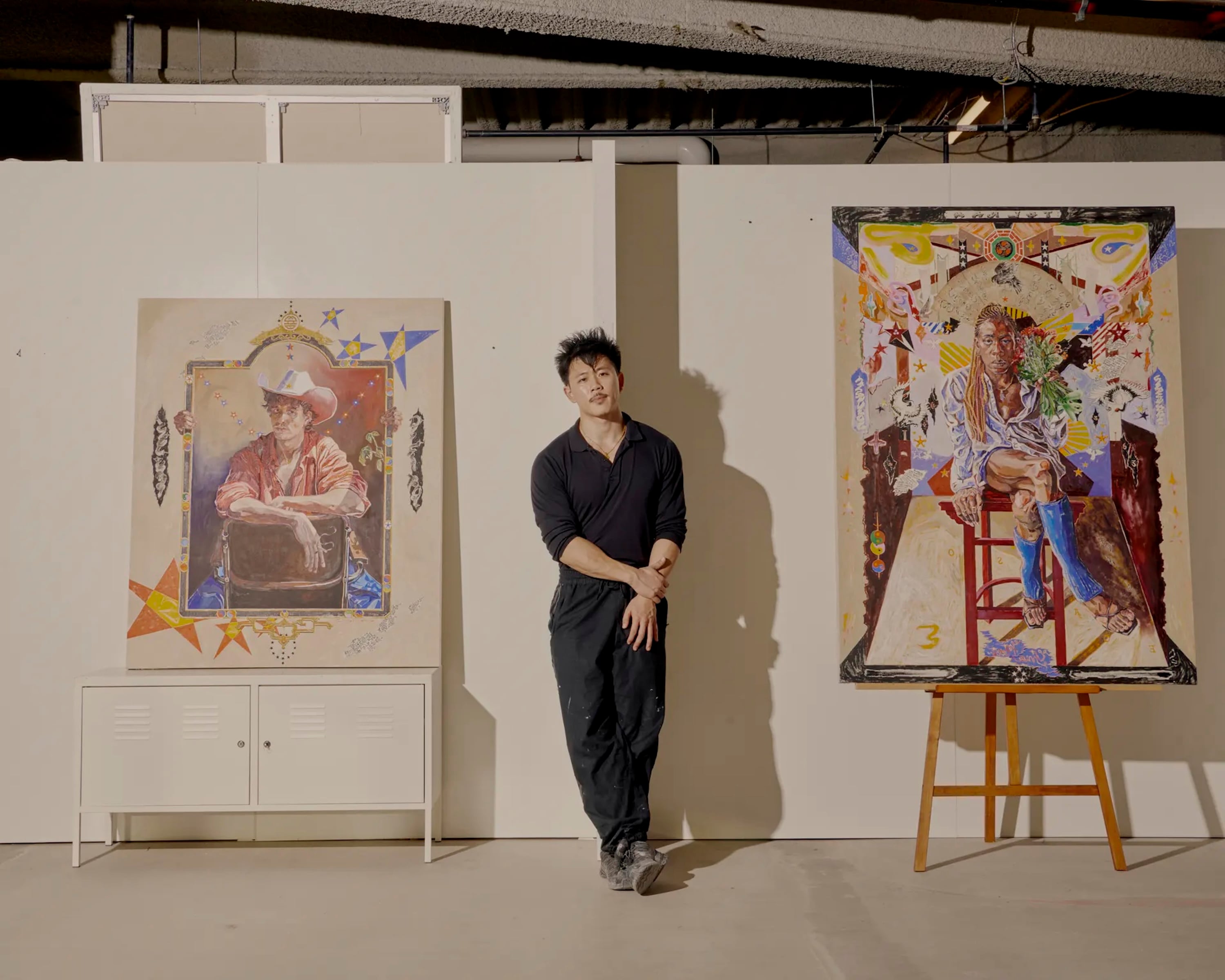“My life is enriched so much by queerness,” Oscar yi Hou tells Man About Town. “And that, in turn, enriches my practice – the whole web of queer sociality.” The Brooklyn-based, Liverpool-born artist is one of the most enthralling young queer creatives of his era. Picked out by James Fuentes before his studies at Columbia University had concluded, the portraitist had his debut solo show with the Manhattan gallerist by the time of his graduation. He’d win the Brooklyn Gallery’s UOVO Prize a year later in 2022, hold his inaugural exhibition at the institution in 2023, and make Forbes’ 30 Under 30 by 2024.