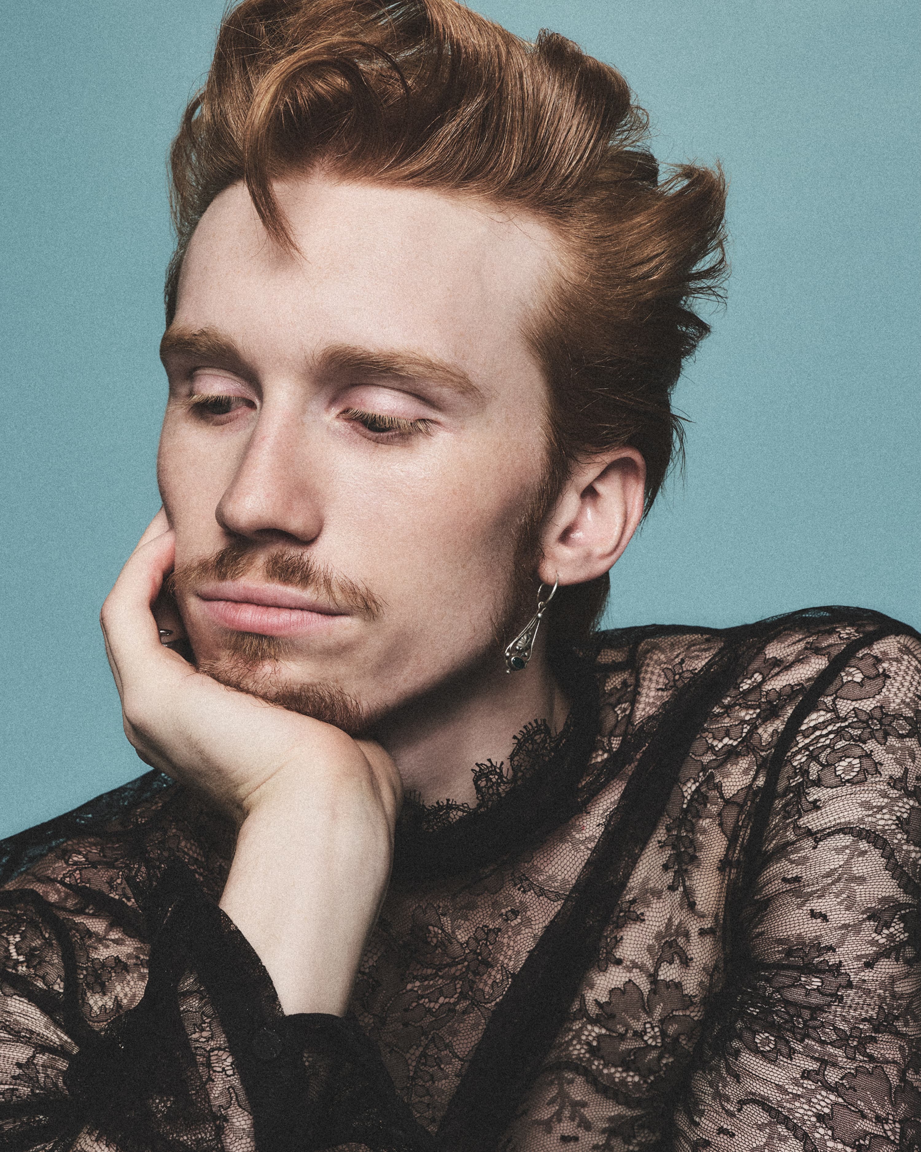 He compares the latter, which took place at Paris Fashion Week last March, to a film production. “It’s crazy, the scale, the amount of people behind it. It didn’t require anything of me other than doing a little walk,” he recalls. “But it’s scary, because it’s so simple that it’s really hard. The beginning of the runway was a flight of stairs. I was like, ‘Oh, for fuck’s sake, really?’” Sure, dressing for lunches with Saint Laurent in Venice or for a Dior show is fun, but when he’s not working, comfort takes priority. “I’ve developed a bad habit of wearing hats all the time. But there’s something comforting about wearing a hat,” he adds – although he’s not wearing one today, his flame-coloured locks simply framing his face instead.