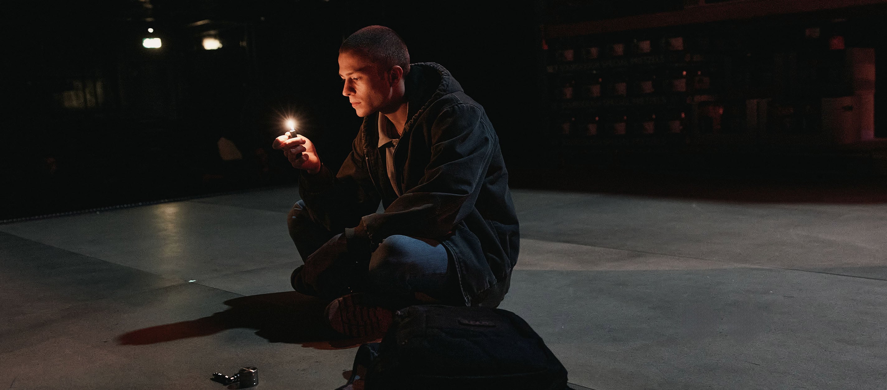 In Clarkston, Mollica slips into the shoes of Chris, a Costco worker from Lewiston, Idaho, wrestling with his identity when he meets Locke’s Jake during an evening shift – a queer man confronting a Huntington’s disease diagnosis while tracing William Clark’s Pacific trail. The play unfolds with love, loss, and a heart-rending portrayal of generational pain, as Chris’ mother, Trisha (Melville), battles addiction. And behind the scenes of this quietly devastating story lies an even sweeter one, a makeshift family forged between the cast.