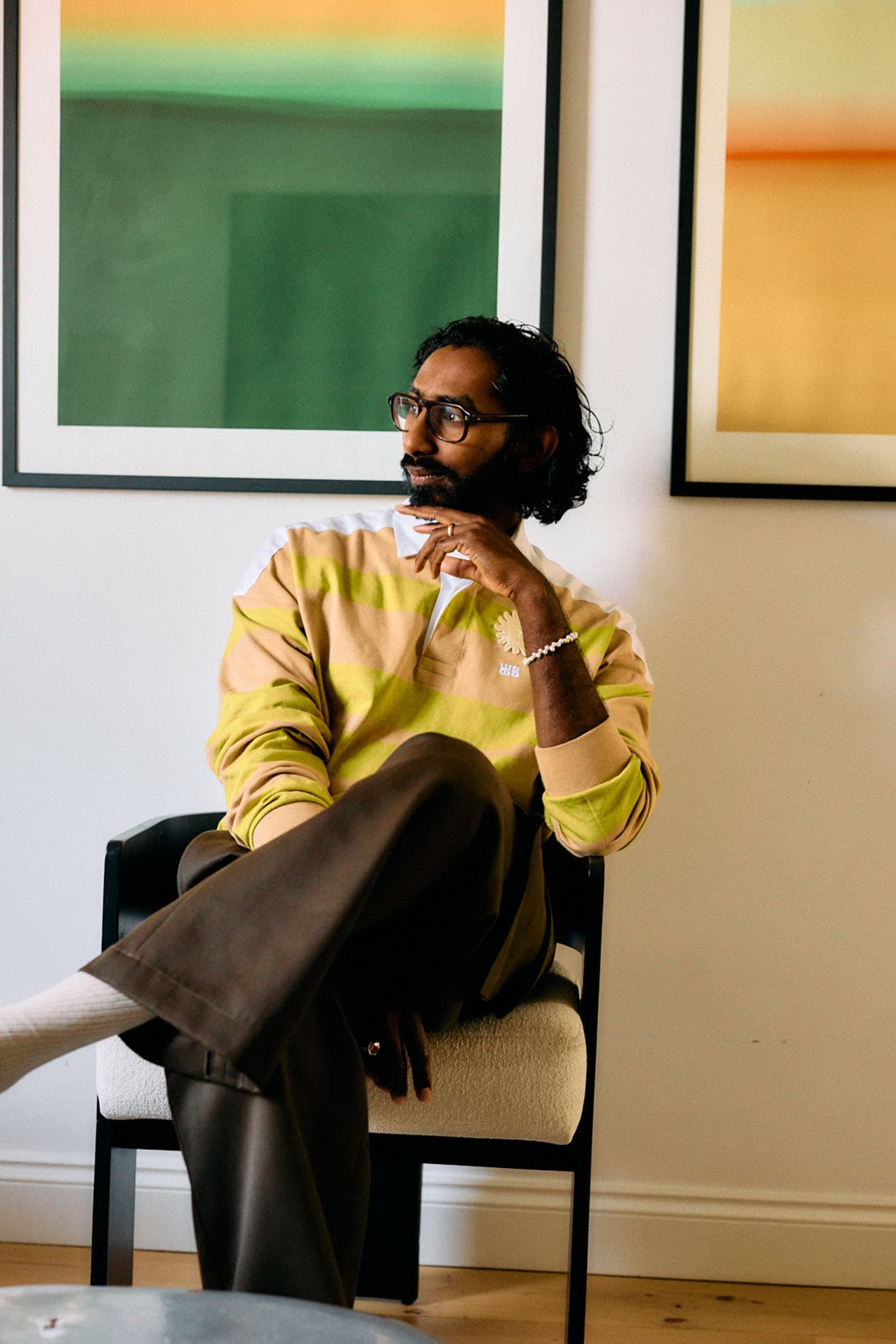 Shooting the book allowed Christian, who describes his style as “very menswear”, leaning on classic pieces like polos, shirts, and denim, to frame South Asian style in his own way. “I didn’t want to be too on the nail. Because I think growing up, whenever I used to see South Asian cultural men in the media, it was very Desi; super into heritage and showing all of the cultural norms. If that’s authentic to that person’s lifestyle, then great, we can shoot that. If it isn’t, we don’t have to do it,” says Christian. “I wanted it to be subtle. We’re stylish men, but we happen to be South Asian.”