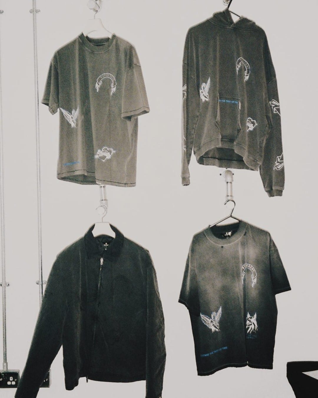 Those same designs feature across the exclusive eight-piece collection, with REPRESENT’s hallmark angel and cherub artwork splashed across the capsule. Sweatsuits, jackets and tees come finished in the brand’s signature carbon wash, complete with distressed hems and cuffs for that perfectly lived-in feel like a piece loved for decades. The Studio Sneaker also gets the Legacy treatment, reimagined in an exclusive black-and-white colourway with a pop of sky blue on the logos and lace tips.