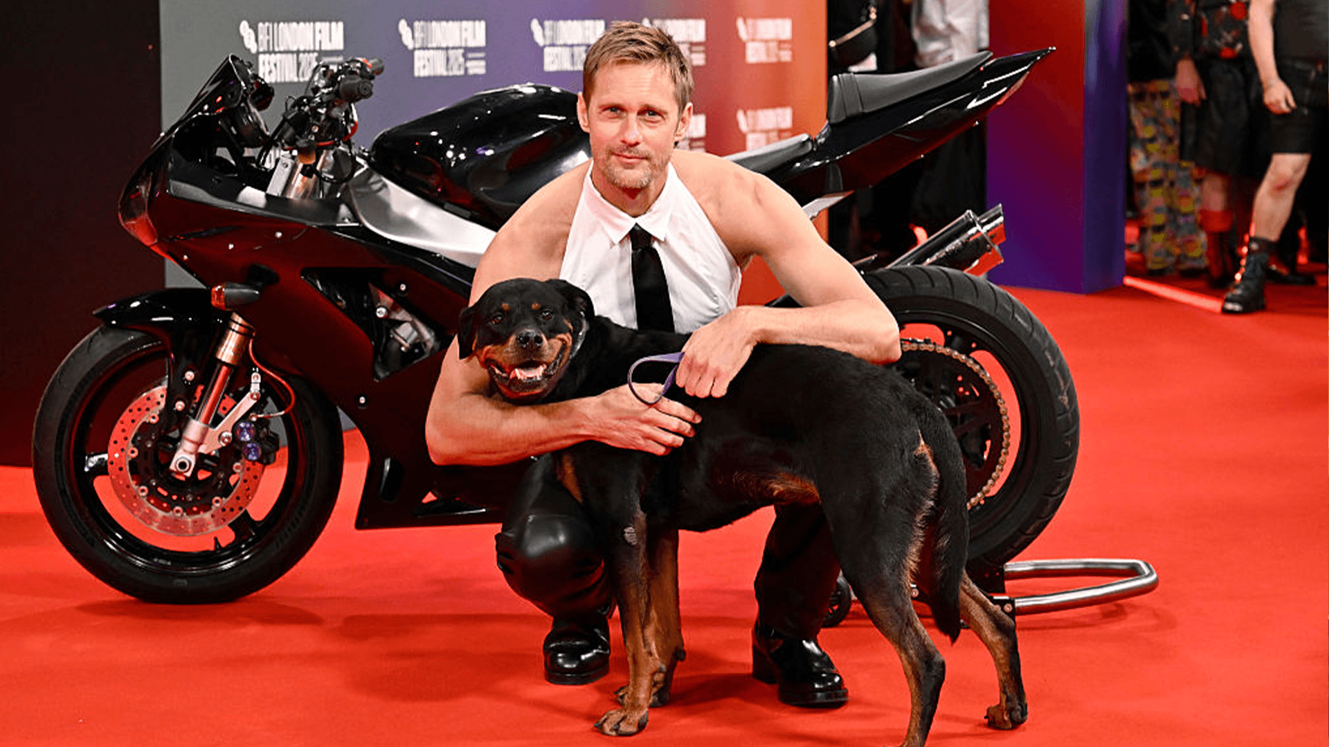 Halterneck shirt, motorcycle on the red carpet and a rottweiler? Yes, it’s safe to say Alexander Skarsgård has taken the cake for most aura at LFF this year for the premiere of his latest film: Pillion. The Swedish actor has been working closely with his stylist Harry Lambert for his press run, exploring the themes of BDSM and queer relationships in a biker gang from the movie through his outfits. From knee-high boots from Saint Laurent at Cannes to this Ludovic de Saint Sernin ensemble, he’s nailed it every single time. This one is definitely our favourite, though.