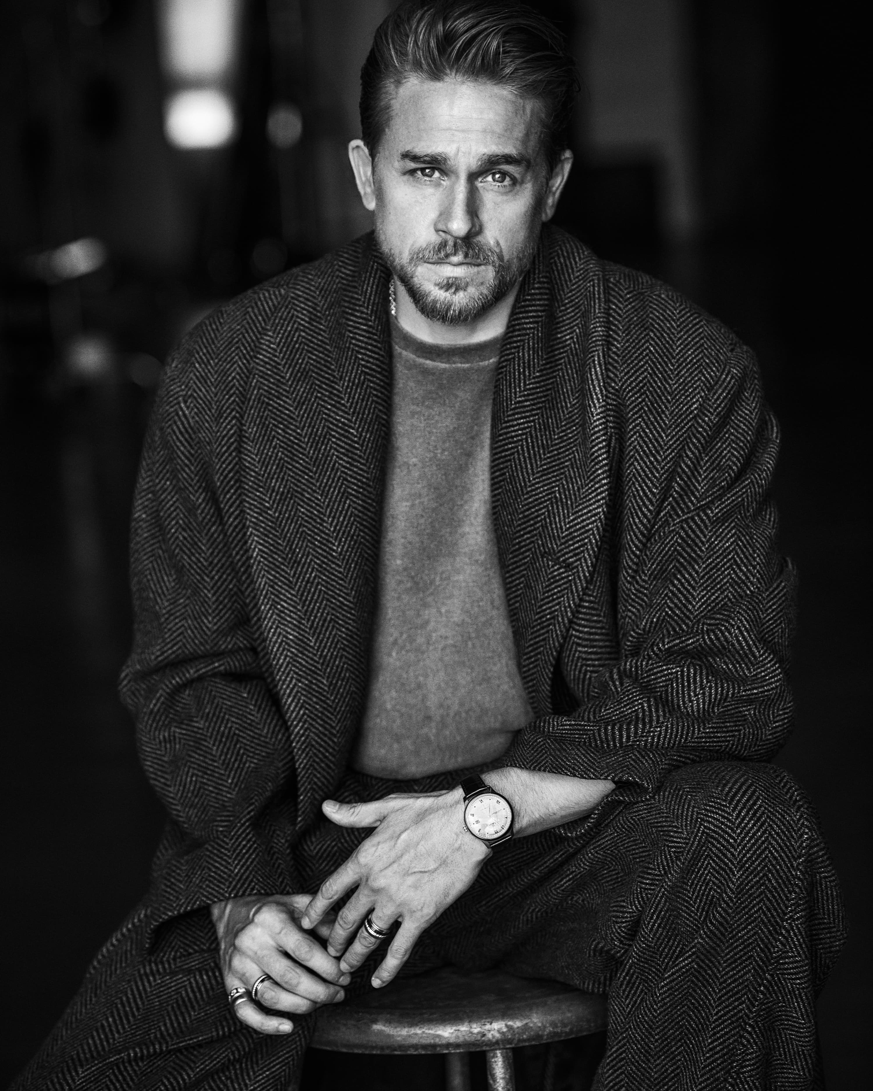 A rumbling train drowns out Charlie Hunnam just as he’s about to reveal the project he wishes he’d never taken. He laughs at the interruption, then doubles back – this time confessing the role he auditioned for but, thankfully, didn’t land. Before he can utter the project’s name, another blaring locomotive barrels past, silencing him again. “That train is my publicist!” he yells with a grin. “Preventing me from saying things I shouldn’t.”