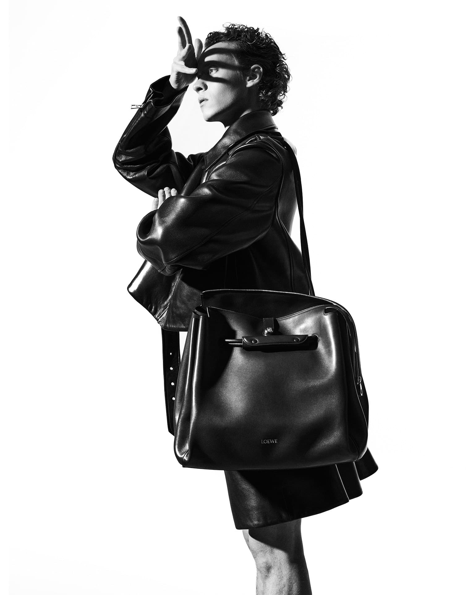 However, his interest in fashion extends far beyond first-rate leather craftsmanship and avant-garde accessories. “I’m very interested in exploring different forms of expression, through textiles, fabrics and garments. During COVID, I did an online course on fashion design from MoMA in New York, and I really started getting into it. To get in touch with Loewe and have that collaboration was a dream come true – they’re truly one of my favourite, favourite brands.” And how does modelling compare to acting? “That was completely unknown territory. I’d never done anything like it before. You can’t hide behind a character because it’s you. It was one of the most nerve-racking experiences I’ve had so far,” he laughs.“But I love it. And to be part of Jonathan’s final campaign for Loewe – that’s a little badge I’ll carry on my heart.”