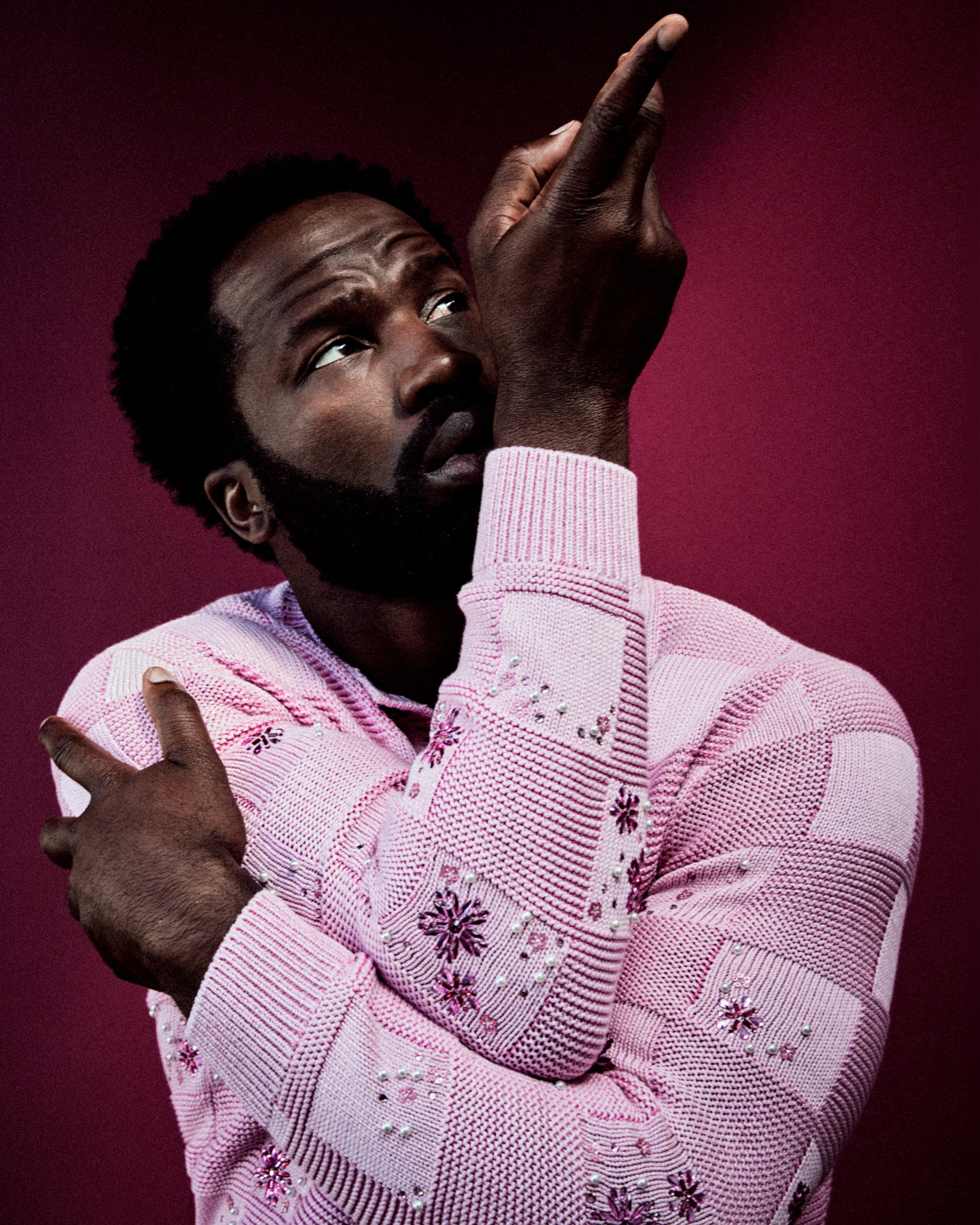 Channelling the emotions of Folarin was aided for Dìrísù both by looking inwards and at the lives of those closest to him. The reserved gravitas he imbued into the role was inspired by an anecdote from his father. “He may not forgive me for sharing it with the world,” he chuckles. “But [he told me that] his father was a disciplinarian, and you could tell from the look on his face exactly what it was that he wanted you to do. There’s an element of that relationship between fathers and sons in Nigeria, typical of Yoruba culture, especially, where, as a man in control, you should not have to do too much to be understood or heard or to be correct. And so I suppose some of the restraint of Folarin comes from there.”