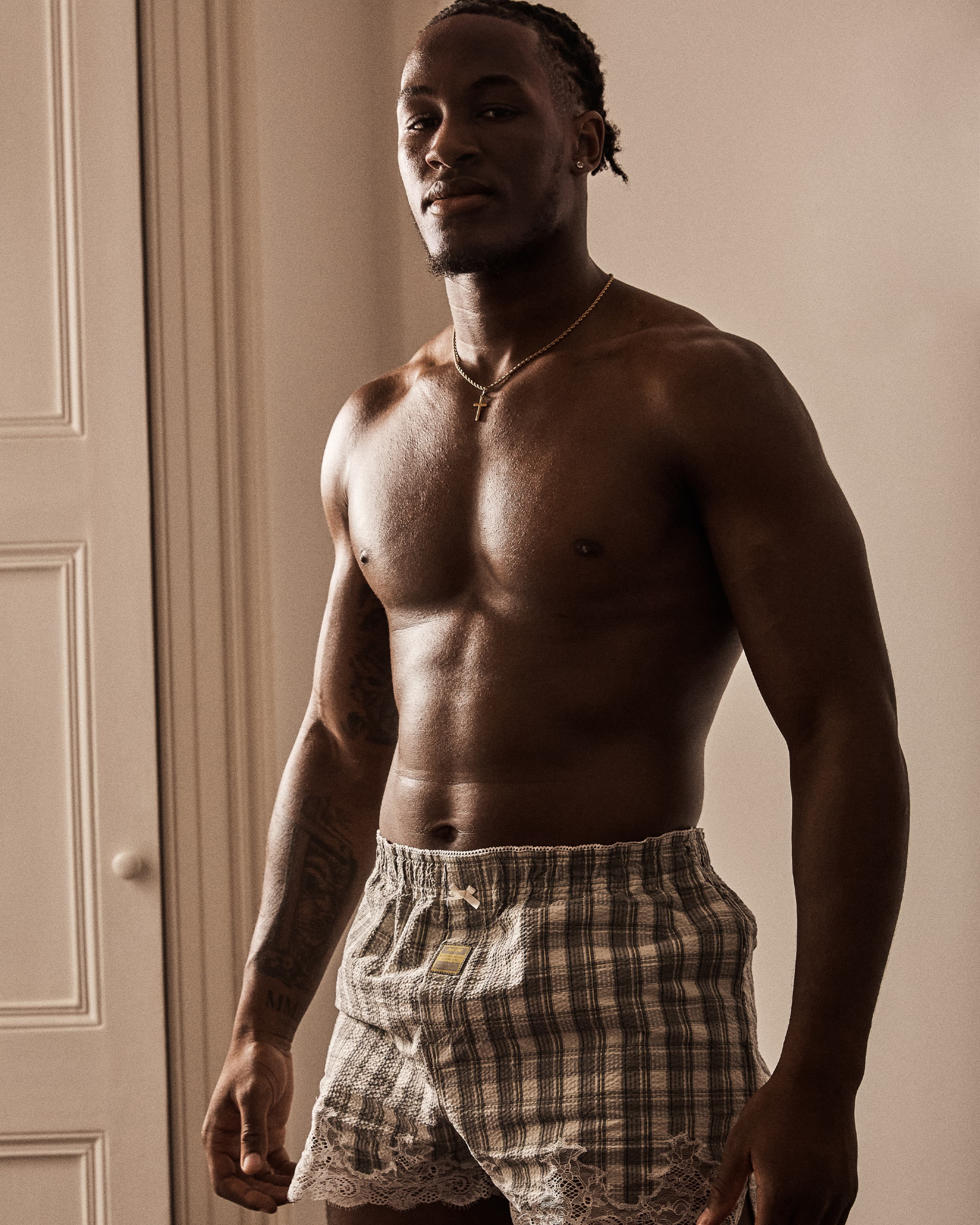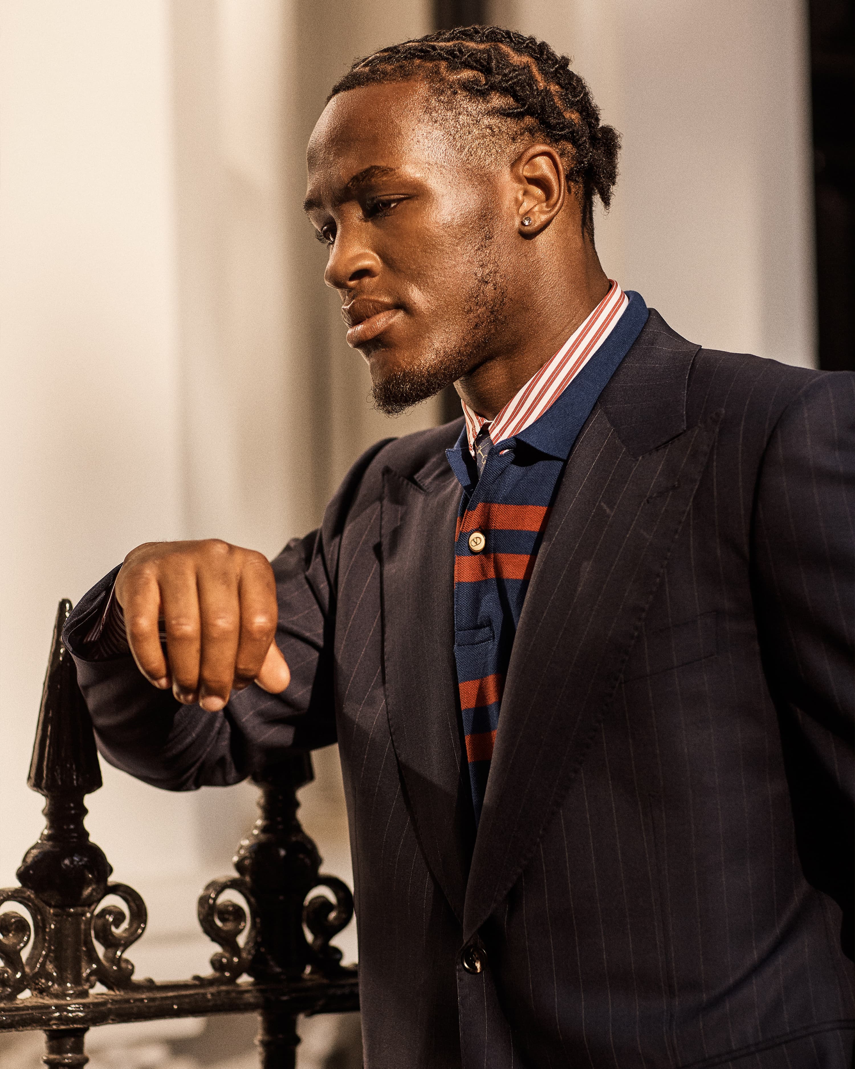 Maturity beyond his years hasn’t just bolstered his fashion philosophies but that of his career so far, too. “It’s difficult because not everyone makes it,” he reflects. “It’s like a mental game as well as a physical game, so you need to be strong in both areas. But in the long run, it’s paid off well, which I’m happy for.” And the big question (even if far out) of retirement plans is one he’s accounted for as well. “After my career, I’d like to be a coach,” he says confidently and assuredly. But that humility and reverence for his roots still hold strong. “I want to be where I started. It would be good to coach the young boys at Wigan.”