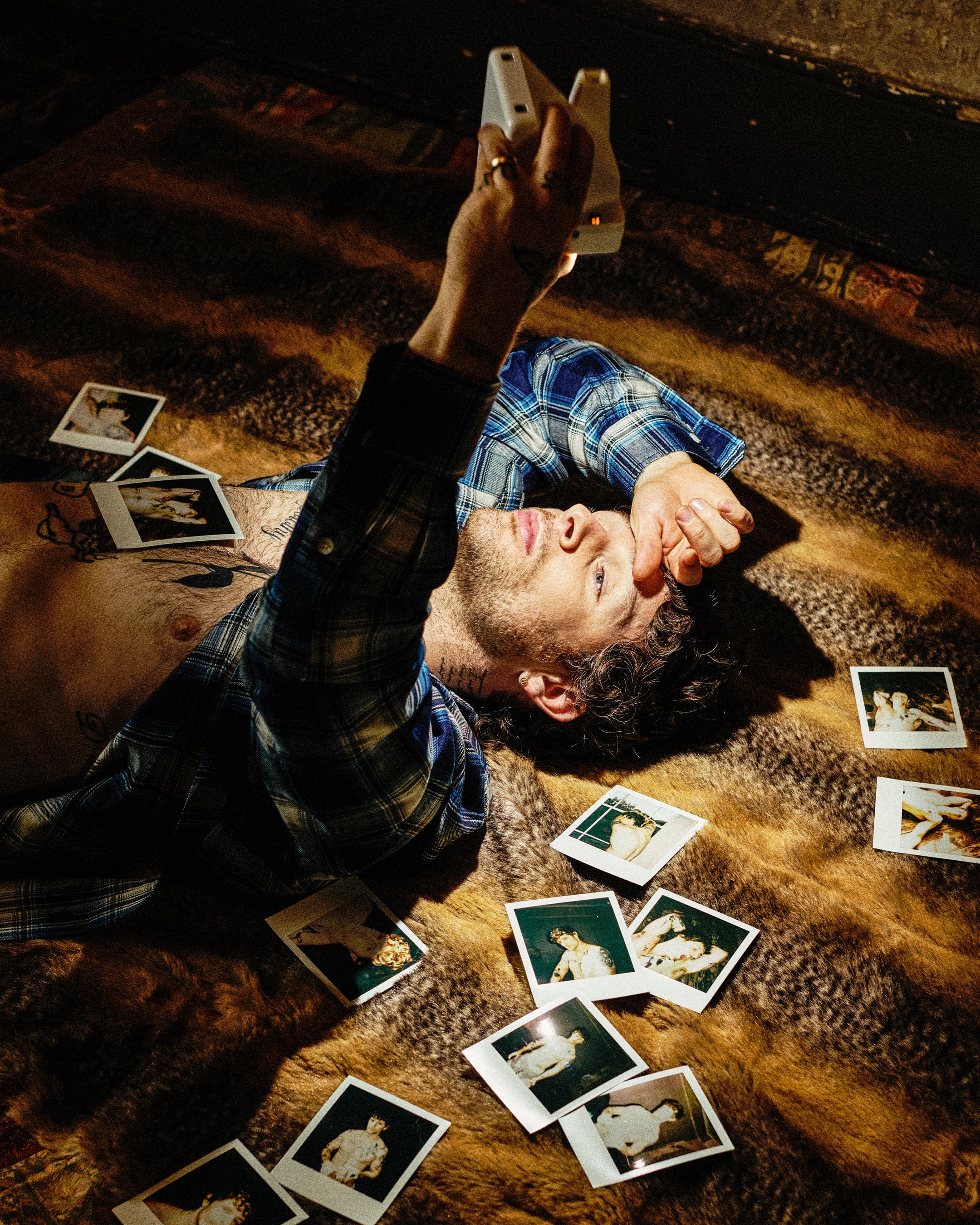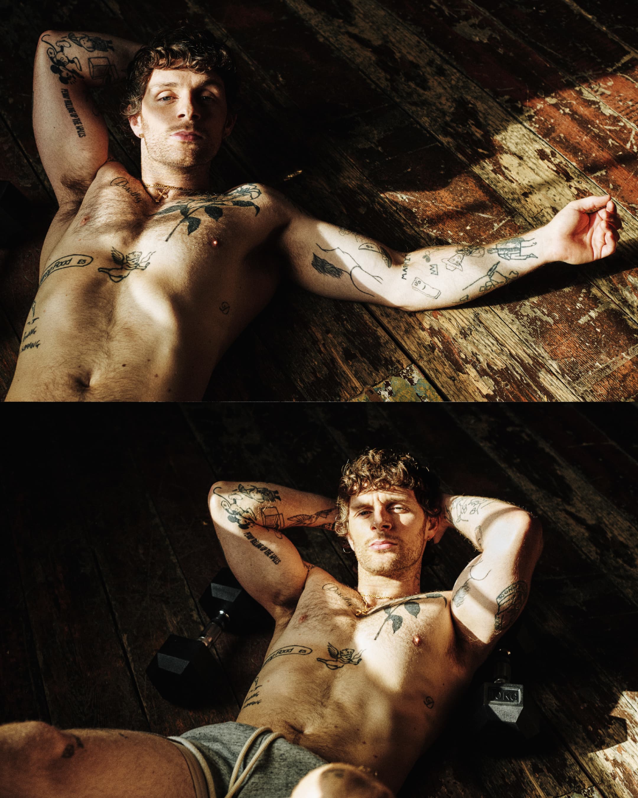 Tom wears vintage top WHAT GOES AROUND COMES AROUND NYC; boxer shorts PHIPPS; socks stylist’s own